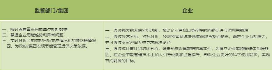 能源监管的工作,最l目的是实现l一监管、分散管控,同时实现节能减排降耗,而节能减排降耗工作不仅是节能产品的应用及(qing)pȝ的控Ӟ更是一个基于动态能源^衡、数据支撑、数字决{、集成品和控制的系l化工程Q能工作的开展始l诏I能源管理体pd设、能源管控^台徏设、能源审计、节能控制改造、节能量审核、电(sh)能质量治理、设备运l管理、碳排放理八个环节Q以能源理体系为牵引,能管q_为抓手,逐步开展能源管控工作?/span>l合能源监管云^収ͼGEM-CloudQ,通过分散的建筑、企业或集团子公司数据统一上传至云q_Q进行整体分析和理Q简化集团能源上报、统计的程Q满监部?集团单位对下属机构的监管要求Qؓ(f)集团_化的能源理提供数据支撑?/span>